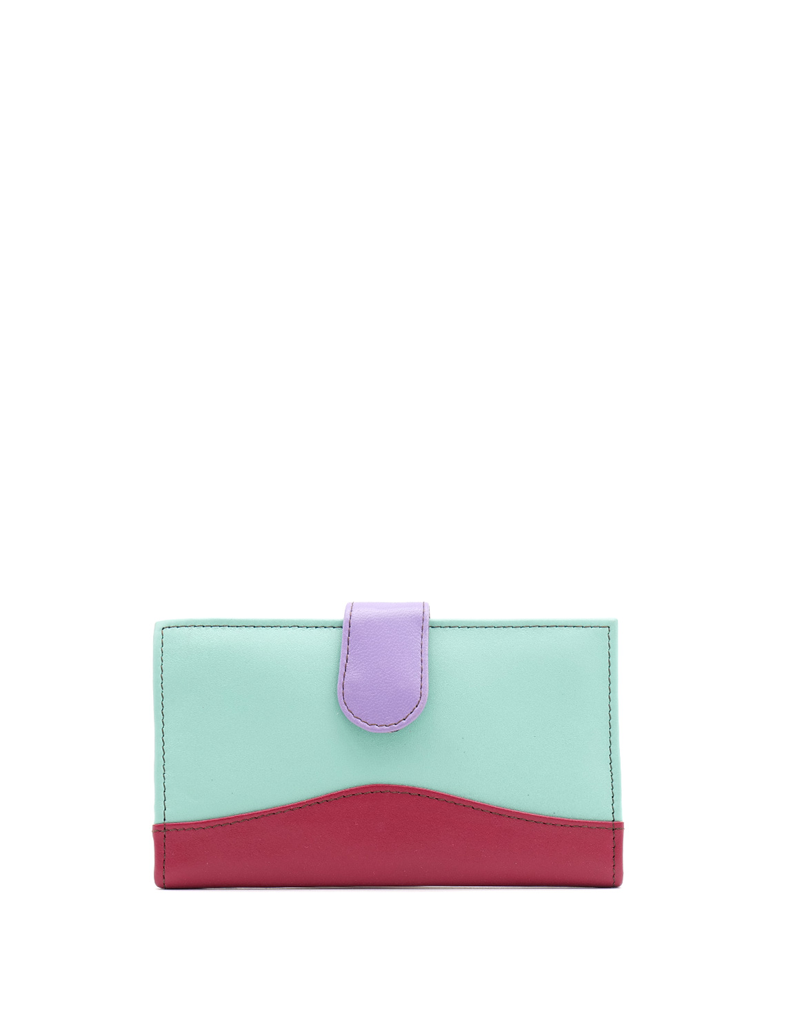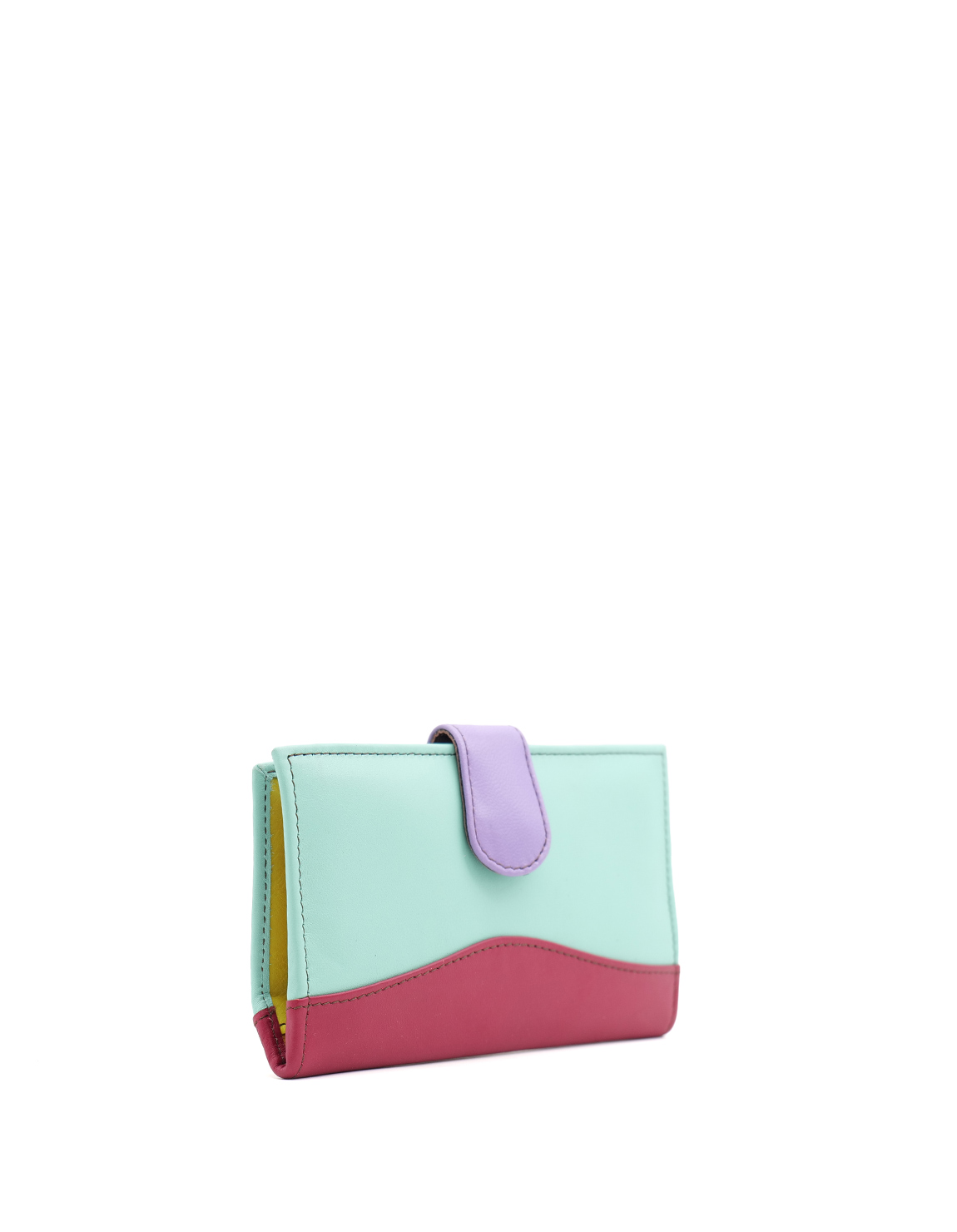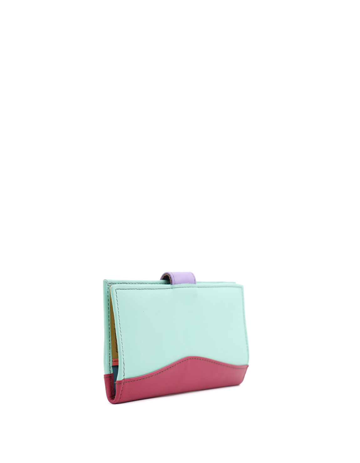 Authentic Leather Handcrafted Wallet in Turquoise and Pink colors. Beautiful Eco-Friendly Wallet made with Recycled Leather.